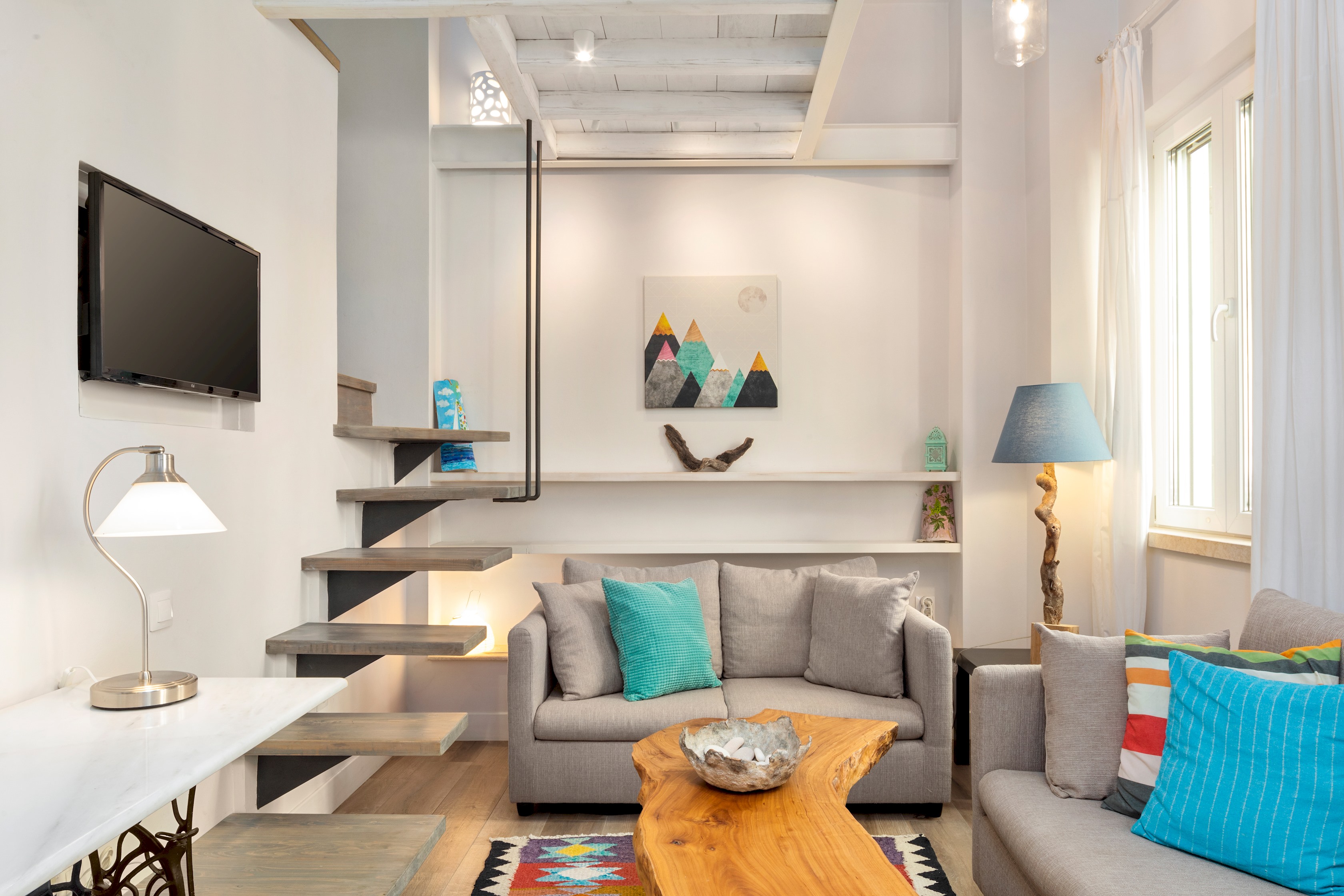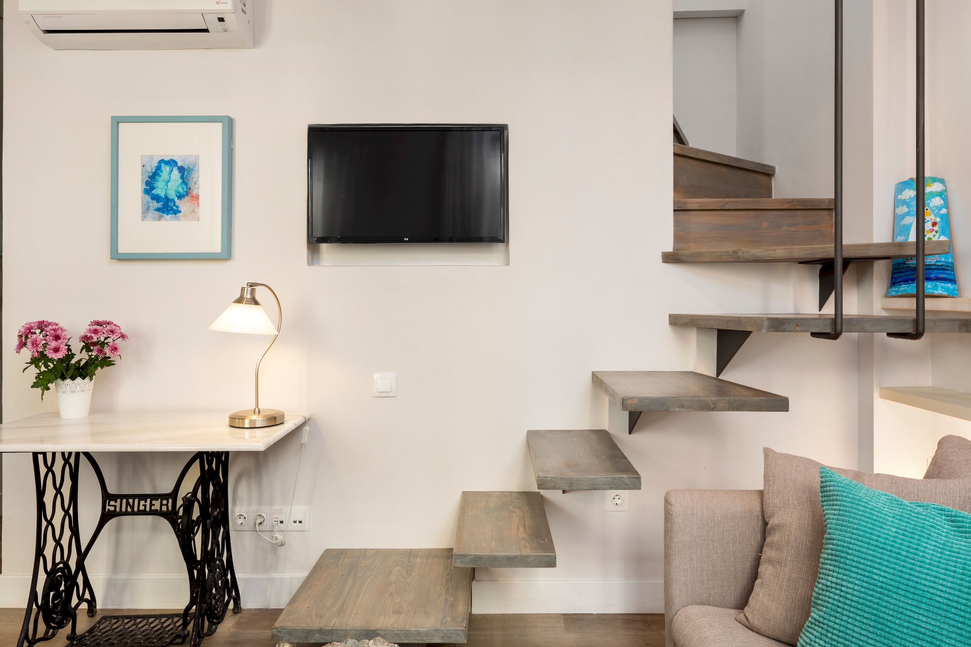 Discover CasaNova Studio No3, a loft-style second floor retreat in Corfu's Old Town. Upstairs, you'll find a cozy double bed with a private bathroom featuring a refreshing shower and convenient washing machine. Downstairs, the spacious living area offers two comfortable sofas and a fully equipped kitchen. Stay connected with satellite wifi and enjoy a comfortable climate with A/C in all rooms. Immerse yourself in the vibrant local scene and explore dining and attractions, at "Kantouni Bizi".